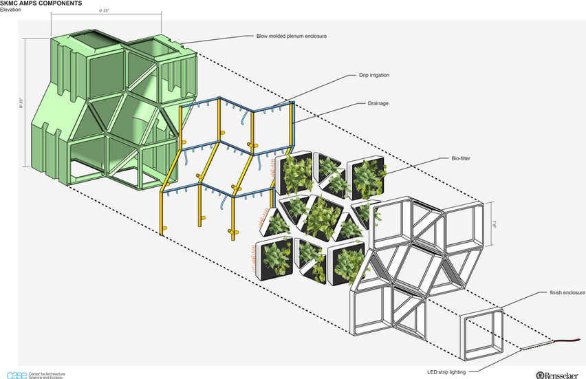 Active Modular Phytoremediation Systems (AMPS) represents a long standing investigation into the potential of scalable and modular building-integrated plant systems and their associated microbiomes to improve indoor air quality, thereby reducing the energy intensive demands of mechanical air handling systems.
